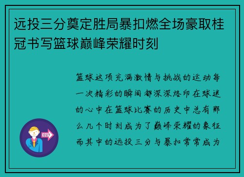 在2025年中国男篮的一场重要比赛中,杨瀚森因伤缺席的情况下,王俊杰的出色表现成为了比赛的转折点,助力球队逆袭成功。这场比赛的背景和过程都引起了广泛关注,特别是在杨瀚森这样一位核心球员缺席的情况下,王俊杰如何从一个相对不被看好的球员,逐渐接管比赛,并带领球队走向胜利,成为了全场的焦点。本文将从四个方面详细分析杨瀚森因伤缺席对球队的影响,王俊杰的突出表现,以及球队如何通过合作和个人努力逆袭成功的过程...